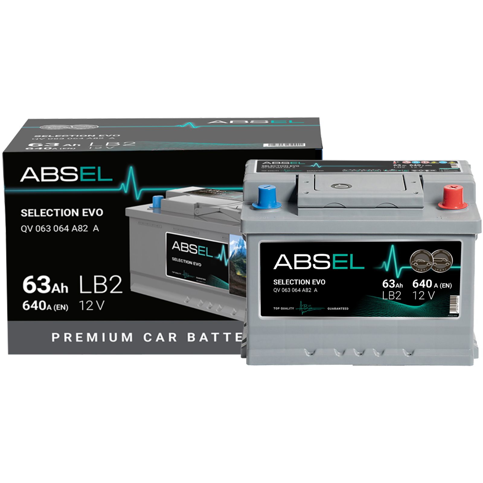 Аккумулятор SLI ABSEL SELECTION EVO 12V LB2 63Ah 640A (0) ОП (легковая) type EURO (242x175x175)