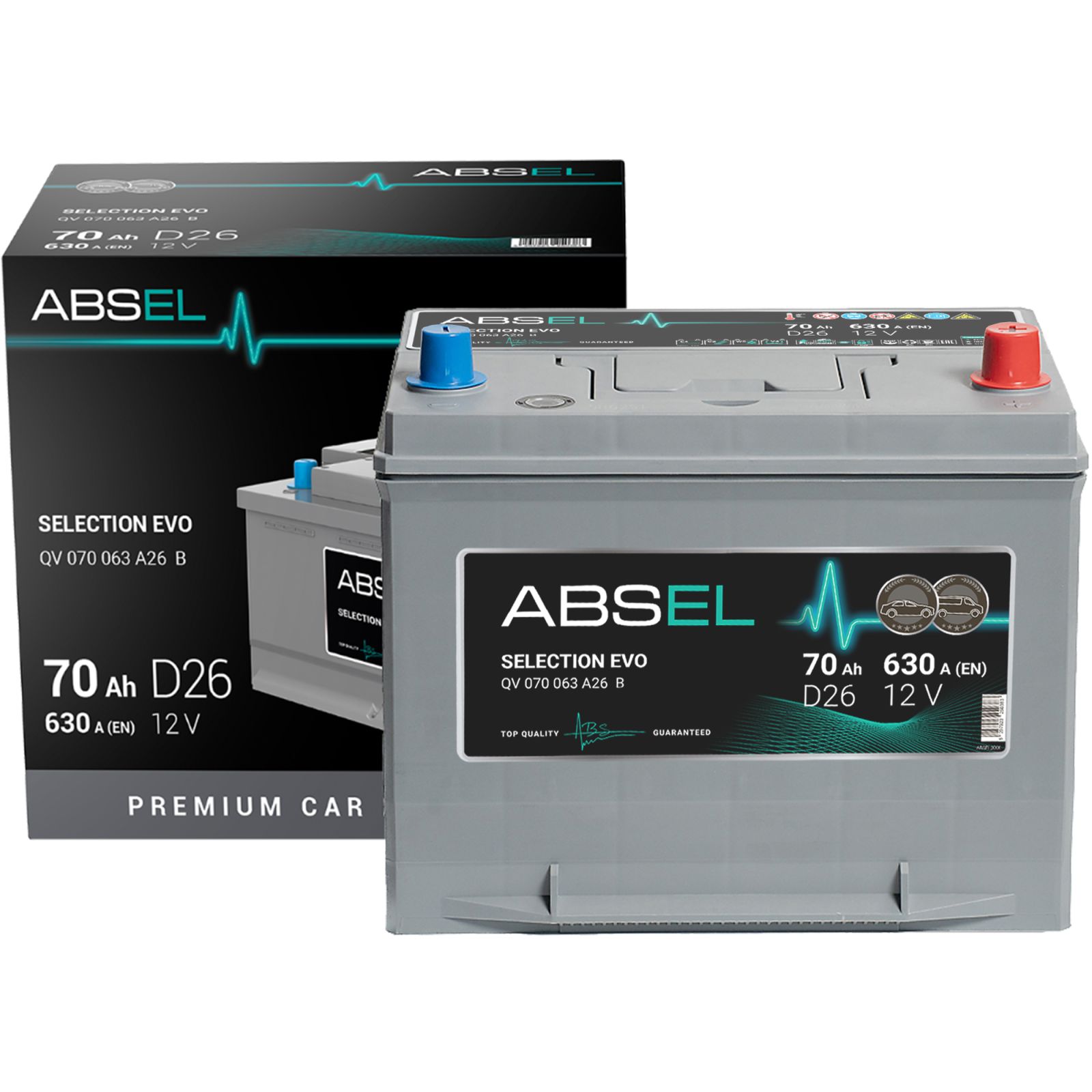 Аккумулятор SLI ABSEL SELECTION EVO 12V D26 70Ah 630A (0) ОП (легковая) type ASIA (260x172x221)
