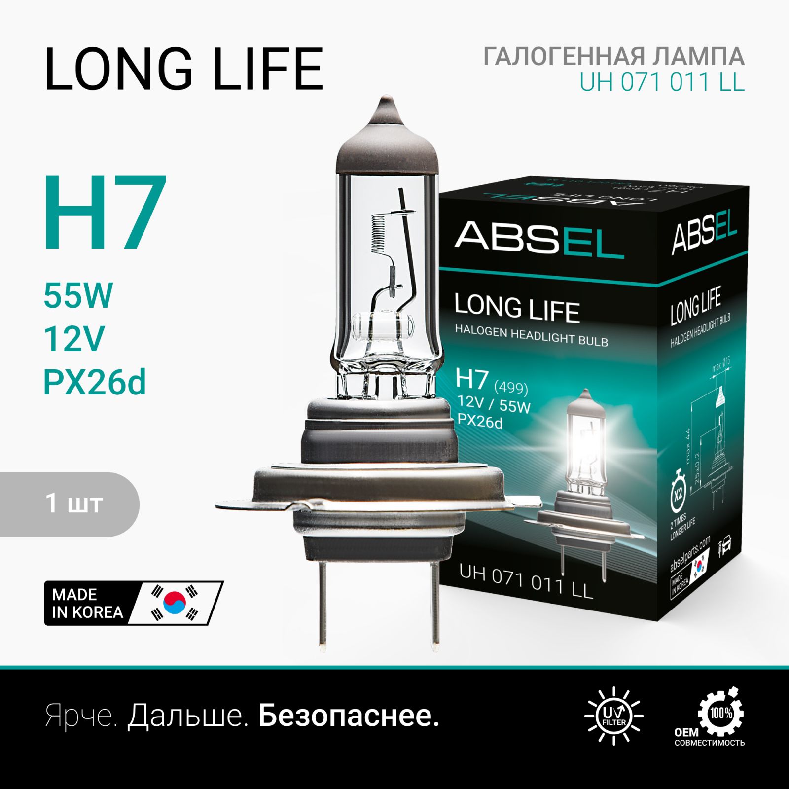 Лампа галогенная H7 PX26d 12V 55W LONG LIFE