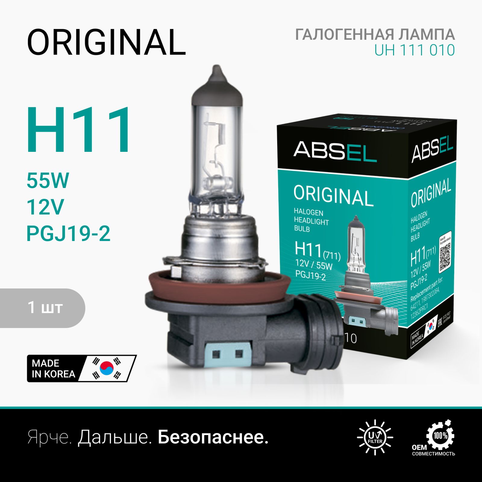 Лампа галогенная H11 PGJ19-2 12V 55W ORIGINAL