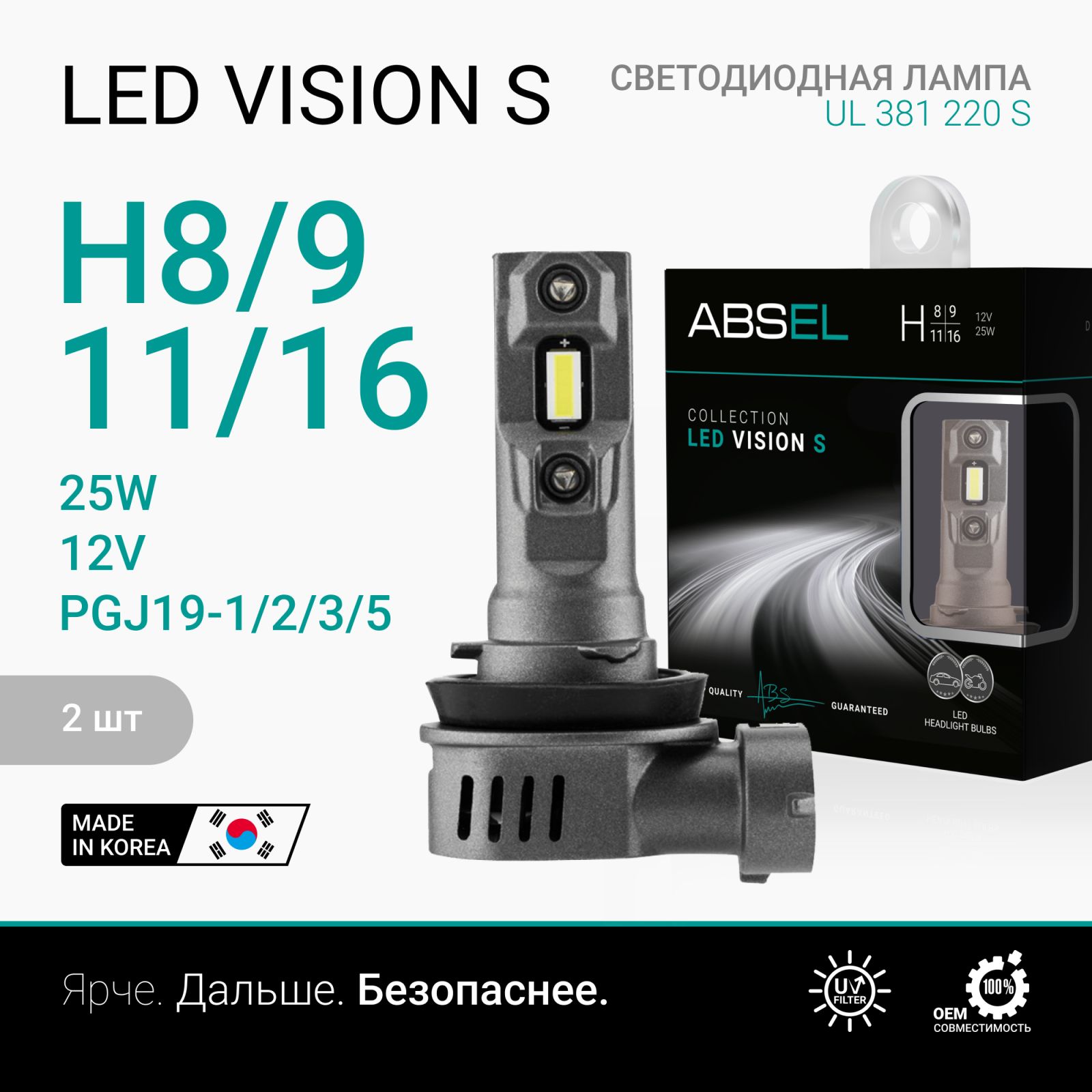 Лампа светодиодная H8/H9/H11/H16 PGJ19-1/2/3/5V 12/25W LED VISION S (комплект 2 шт)