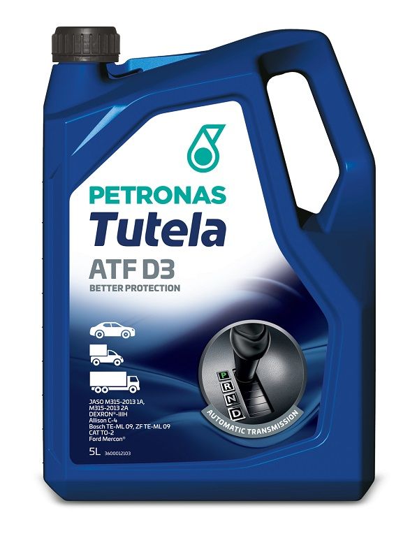 PETRONAS Tutela ATF D3 подходит для использования во многих обычных автоматических коробках передач, системах рулевого управления с усилением и гидравлических системах как легковых автомобилей, так и коммерческих транспортных средств и эксплуатируемой вне дорог строительной техники, требующей производительности уровня GM DEXRON®-III. Оно также соответствует стандартам JASO M315-2013 1A и JASO M315-2013 2A, применяемым японскими производителями оборудования для использования в автоматических коробках передач.