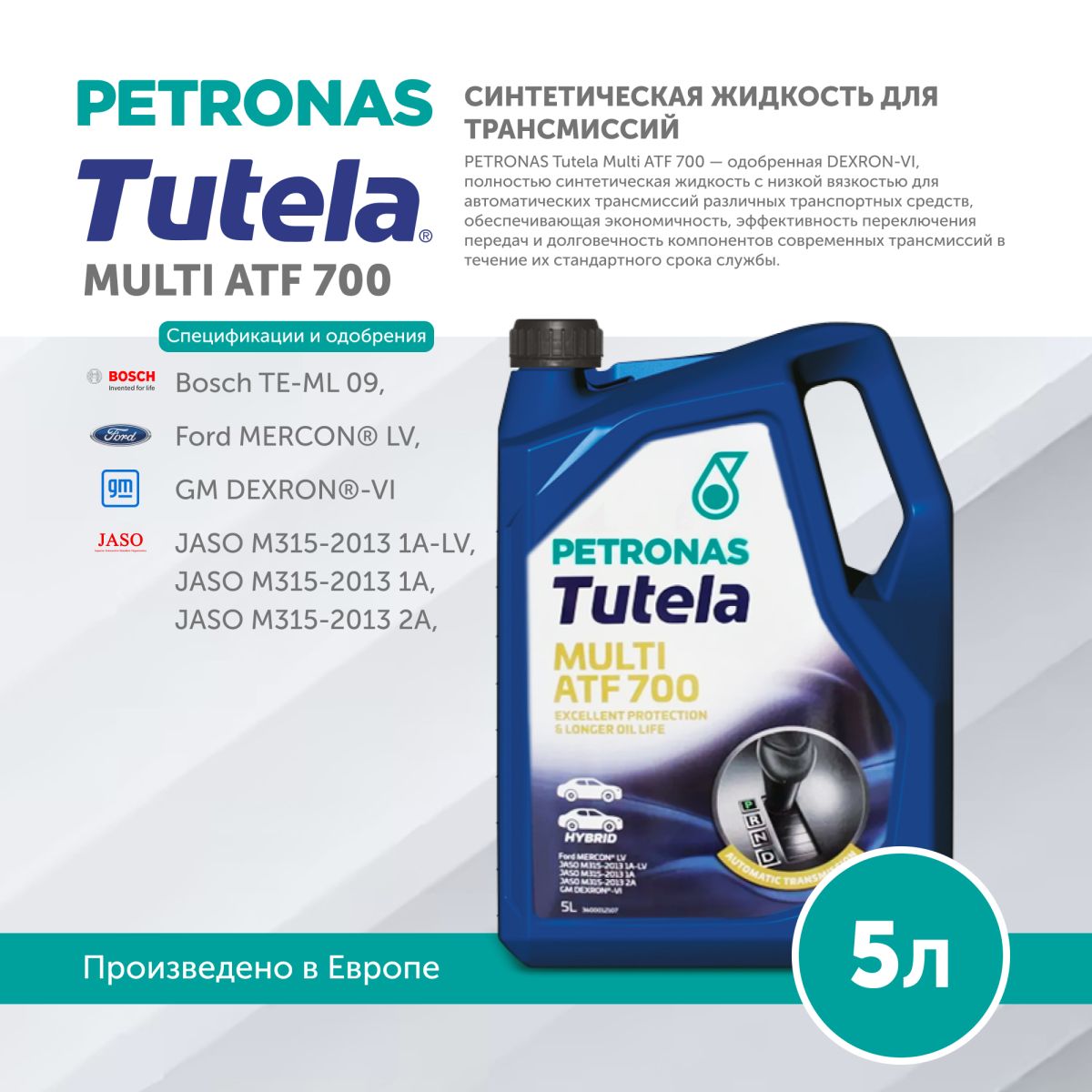 Aisin Warmer JWS 3309 (T-IV) & JWS 3324 (WS), Audi/Seat/Skoda/VW 5 HP LT7114, G 052 025, G 053 025, G 052 162, BMW JWS 3309 (T-IV), LA2634, LT71141 (ZF 5 HP 18FL/19FL/24A), ZF 5HP18FL, 5HP24, 5HP30, 7045E, ETL-80728, MINI, Bentley PY112995PA, ChryslerATF+, +2, +3 (MS7176E), +4 (MS 9602), DEXRON® III H fluid, Daewoo LT 71141, Daihatsu AMMIX ATF D-II, AMMIX ATF D-III SP, FIAT 9.55550-AV1, 9.55550-AV2, 9.55550-AV3, 9.55550-AV5, 9.55550-AV6, Ford MERCON® LV, Fuso ATF-II, ATF-SPIII, ATF-A4, Hino Blue Ribbon ATF, Honda ATF-Z1 (except in CVTs), DW-1, Honda Type 3.0 и Type 3.1, Hyundai/Kia AP-IV, SP-IV M, SP-IV-RR, SP-III, Dex-II/SP-II, JWS 3314, JWS 9683, ISUZU, BESCO ATF-II, ATF-III, Idemitsu K17 3100 PL085 , JASO M315-2013 1A, 1A-LV, 2A, JASO M315-2013 1A-LV, Jaguar ATF 3403 M115, ATF 3403-M115, ATF LT71141, ZF 5HP24, JLM20238, Land Rover LR023288, TYK500050, LR0022460, MINI COOPER T-IV, Maserati 231603, Mazda ATF D-II, ATF M-III,ATF M-V, ATF FZ, ATF F-1,ATF S-1, ATF N-1, ATF 3317, Mitsubishi Diaqueen SK, SP-II, SP-III, SP- IV, AW, 12, 13, ATF PA, Nissan Matic Fluid C, D,J, K,S, Peugeot ZF 4HP20, Porsche, ZF 5HP19FL, ZF 5HP20,LT71141, ATF 3403-M115, T-IV (JWS 3309), Renault DPO/AL4, Matic D2, Renault Samsung SATF-D , Ssang yong DSIH 5M-66, Subaru ATF ATF 5AT, DEXRON"-II, ATF HP, Suzuki AT OIL 5D06,ATF 2326. ATF 2384K, JWS 3309, ATF 3314,ATF 3317, Suzuki ATF AW-1, Toyota ATF T-IV, ATF WS, Volvo 97325, 97335, CE 97340, PN 1161521, PN 1161540/1161640, PN 31256774/31256675, PN 1161621 , ZF all 3 & 4 speed transmission, TE-ML 09, 09X, 11A, AAB |