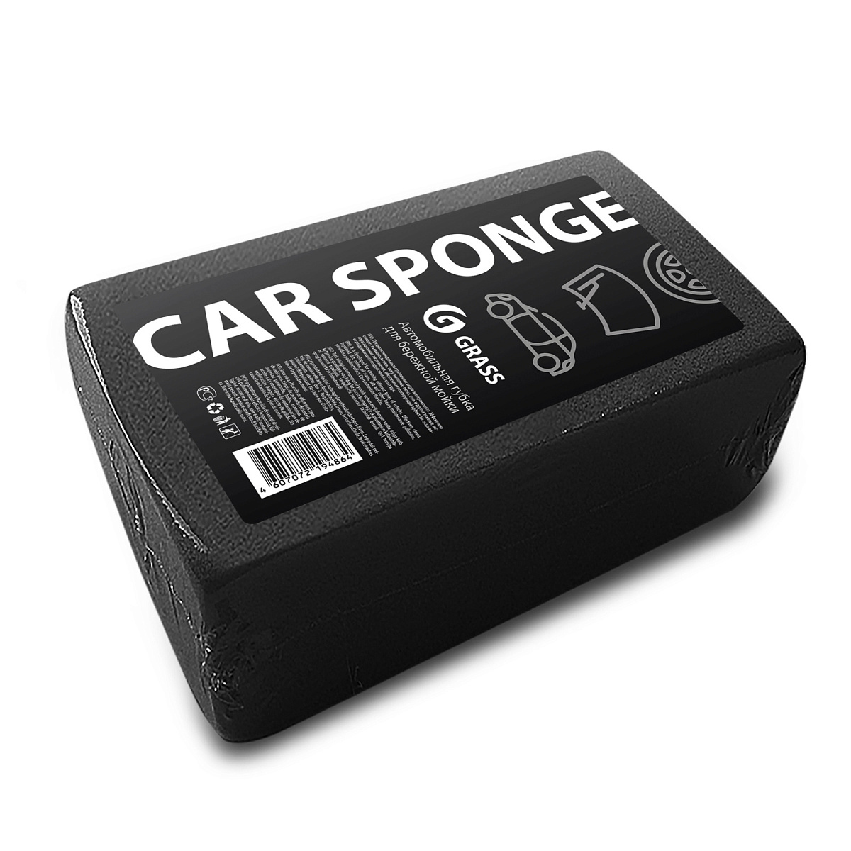 Губка автомобильная прямоугольная черная GRASS 190х110х55 мм( индивид. упак.)