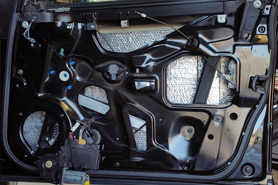 • Обработка дверей и арок: Многослойная изоляция с использованием специальных матов, которые блокируют шум от шин, ветра и внешней среды.